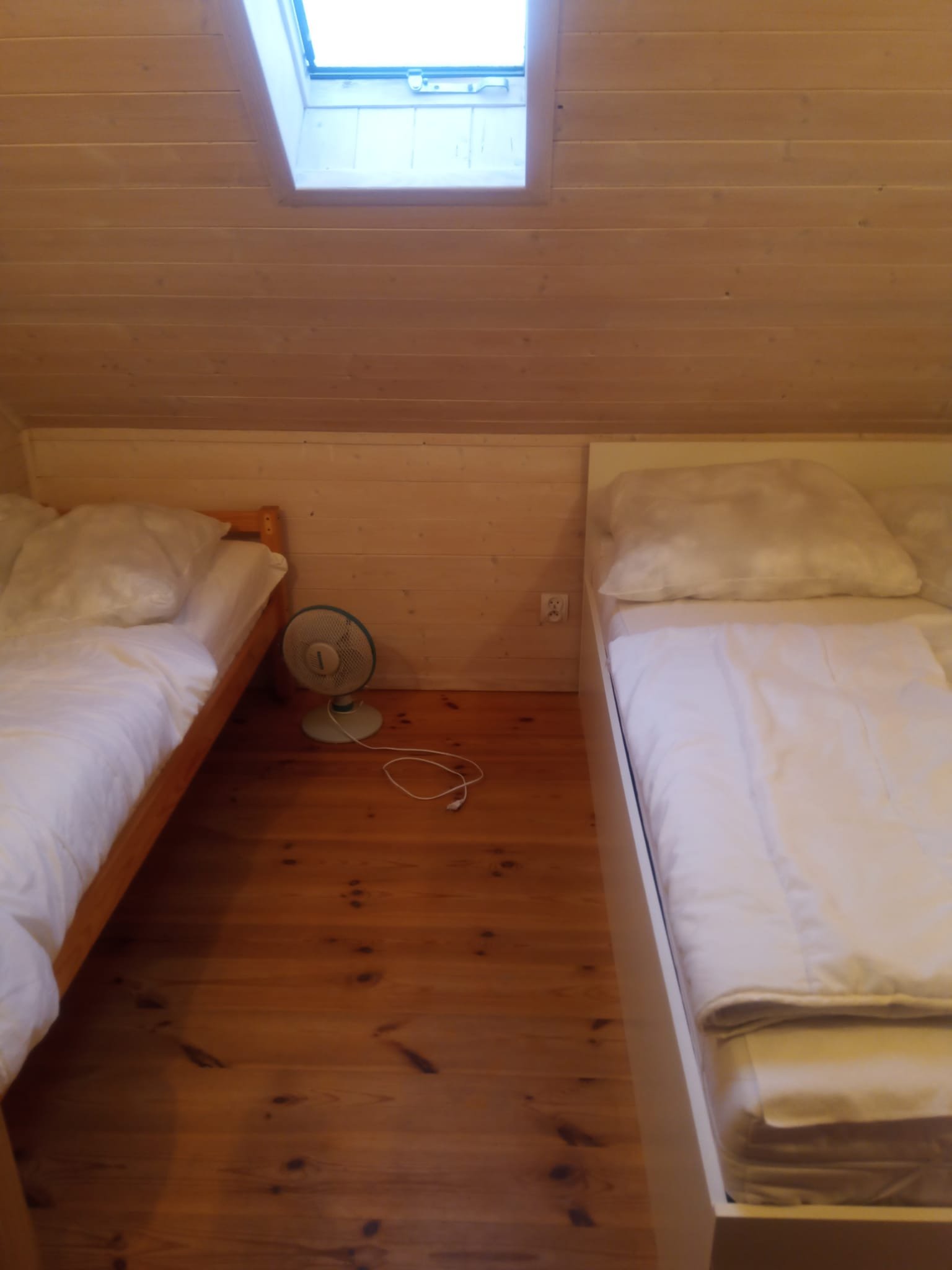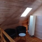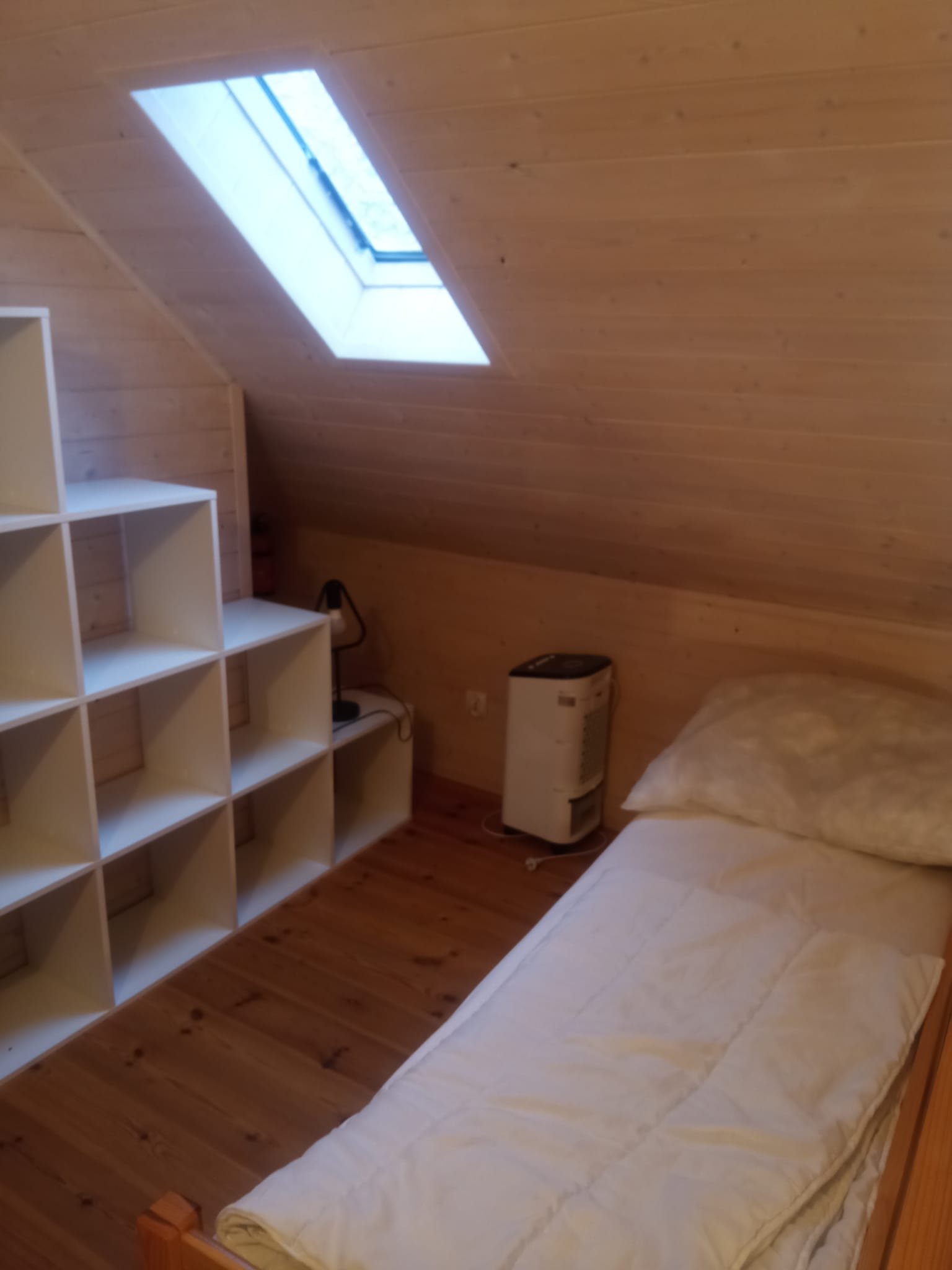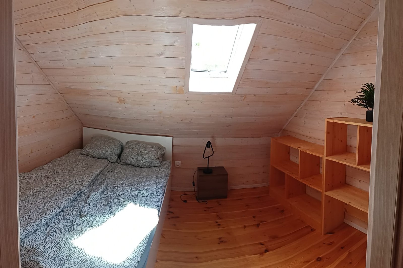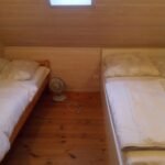 Na piętrze znajdują się sypialnie 3 osobowa pojedyncze łóżko 70cm na 200 i podwójne łóżko małżeńskie o 140cm na 200cm, natomiast na antresoli znajduje się pojedyncze łóżko 70cm na 200cm, piętro posiada drugą toaletę wyposażona w WC i umywalkę.