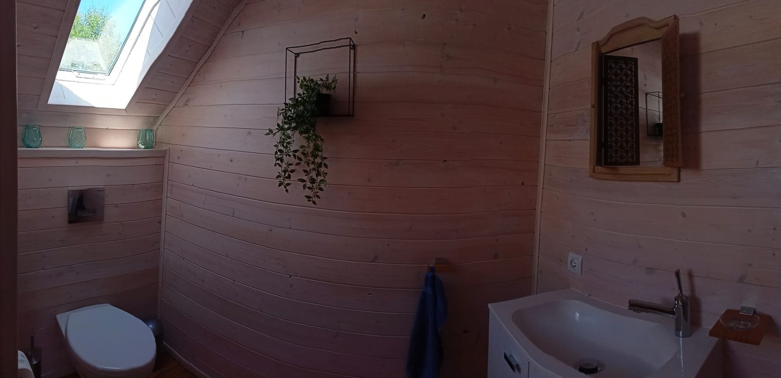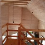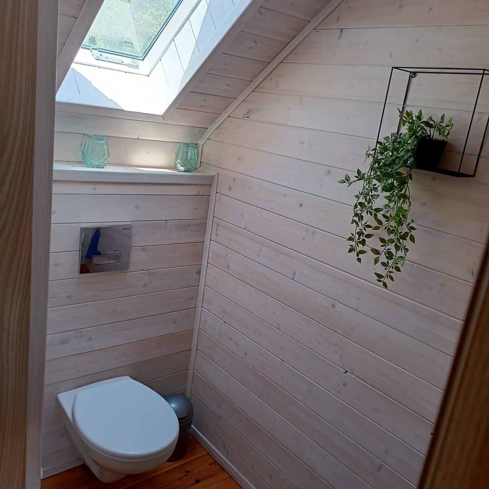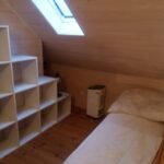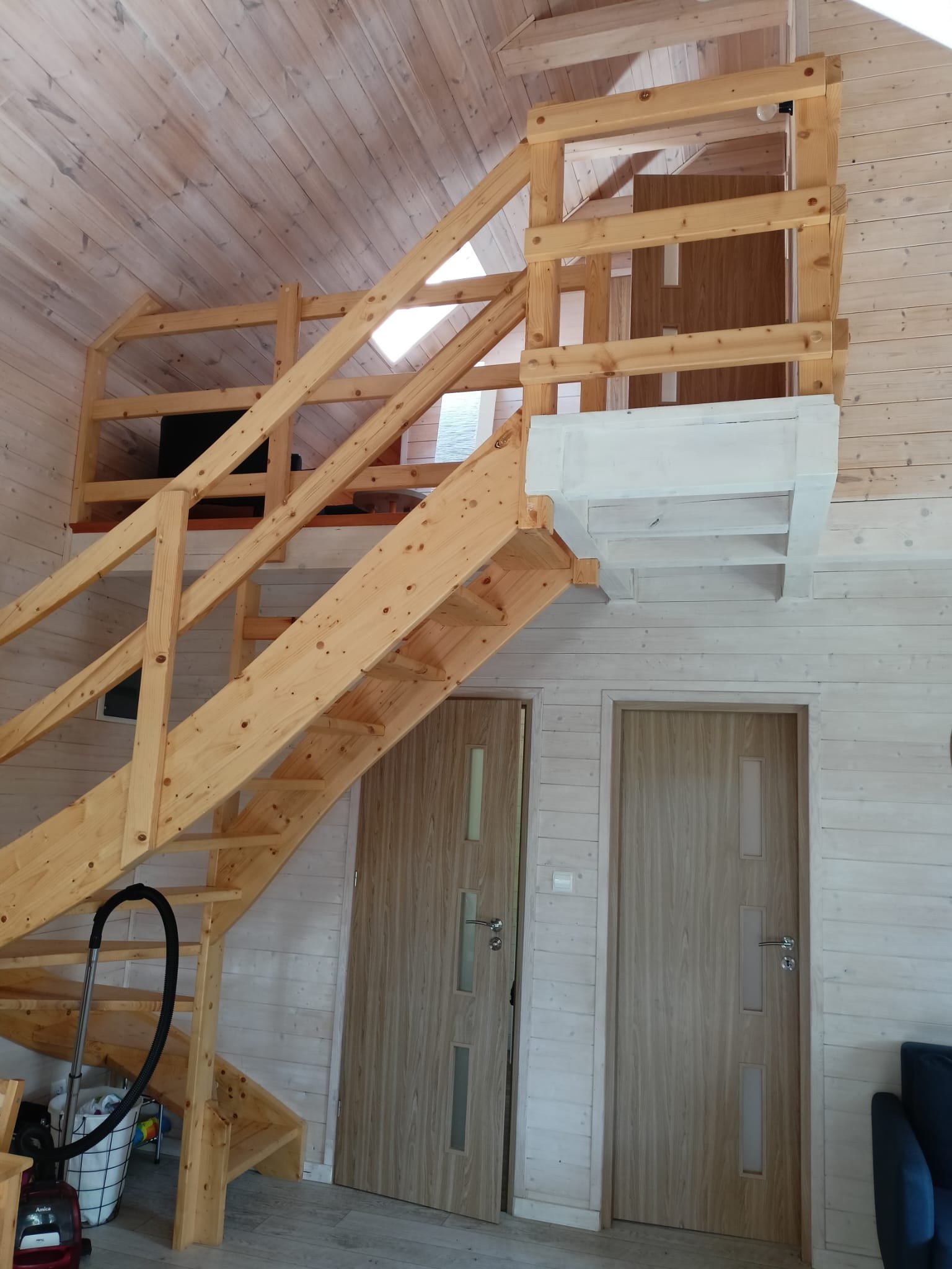 Na piętrze znajdują się sypialnie 3 osobowa pojedyncze łóżko 70cm na 200 i podwójne łóżko małżeńskie o 140cm na 200cm, natomiast na antresoli znajduje się pojedyncze łóżko 70cm na 200cm, piętro posiada drugą toaletę wyposażona w WC i umywalkę.